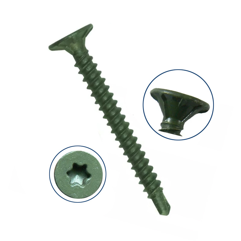 Thread size:#6, #7, #8, #10 (M3.5, M3.9, M4.2, M4.8) Length:1" to 4" (25mm to 100mm) Recess type:Phillip;Torx;Square; Head type:Scavenger (double bugle);Trim 4 nibs;Flat 5/6 nibs; Thread type:Coarse thread (single thread);Fine thread (twinfast);Hi-Low thread; Point:Drilling point;Spoon Point; Finish:Phosphate (grey or black); Zinc Plated (clear / white / yellow); Coating (Geomet, Dacrotized, Ruspert etc.)